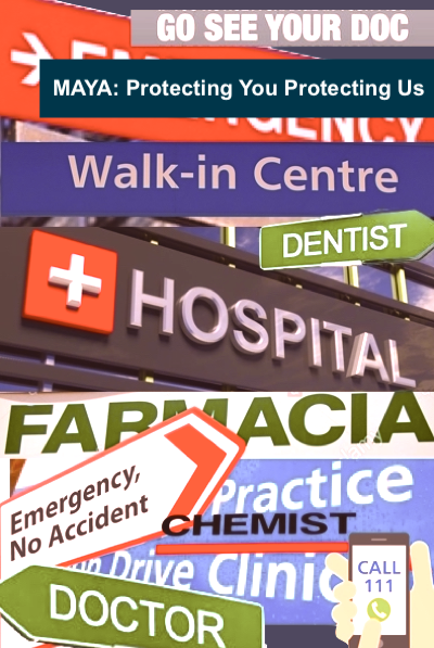 Blue → Definatly associated with infections, Maya will reminds you to stay isolated at home, not travel or go to consult a doctor or hospital but "Speak to NHS111